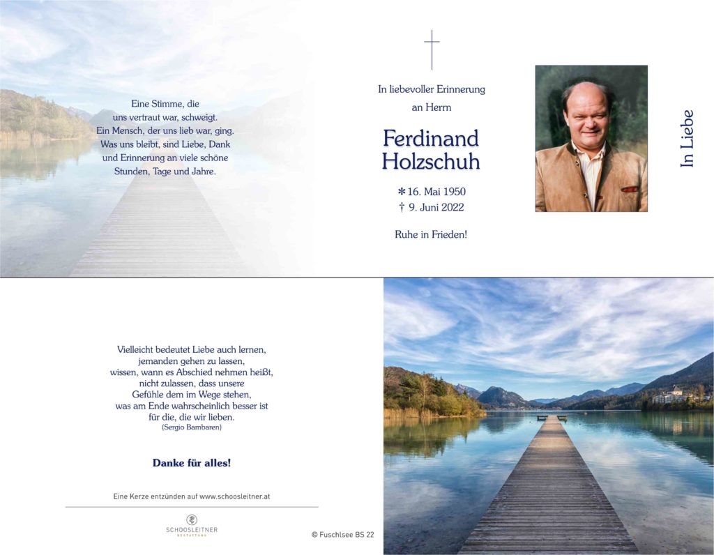 Neuer Eintrag in das Kondolenzbuch von Herr Ferdinand Holzschuh
