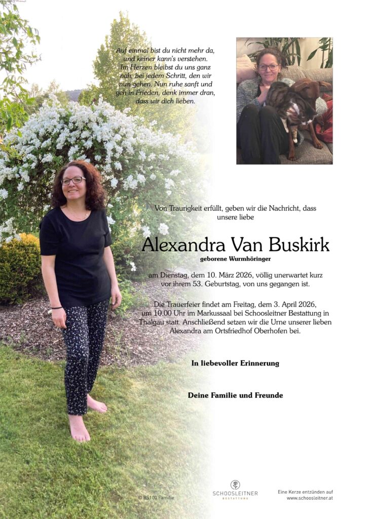 Neuer Eintrag in das Kondolenzbuch von Frau Alexandra Van Buskirk