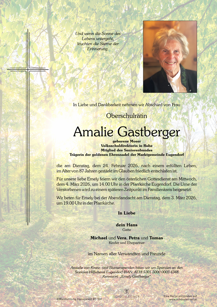 Neuer Eintrag in das Kondolenzbuch von Frau Amalie Gastberger