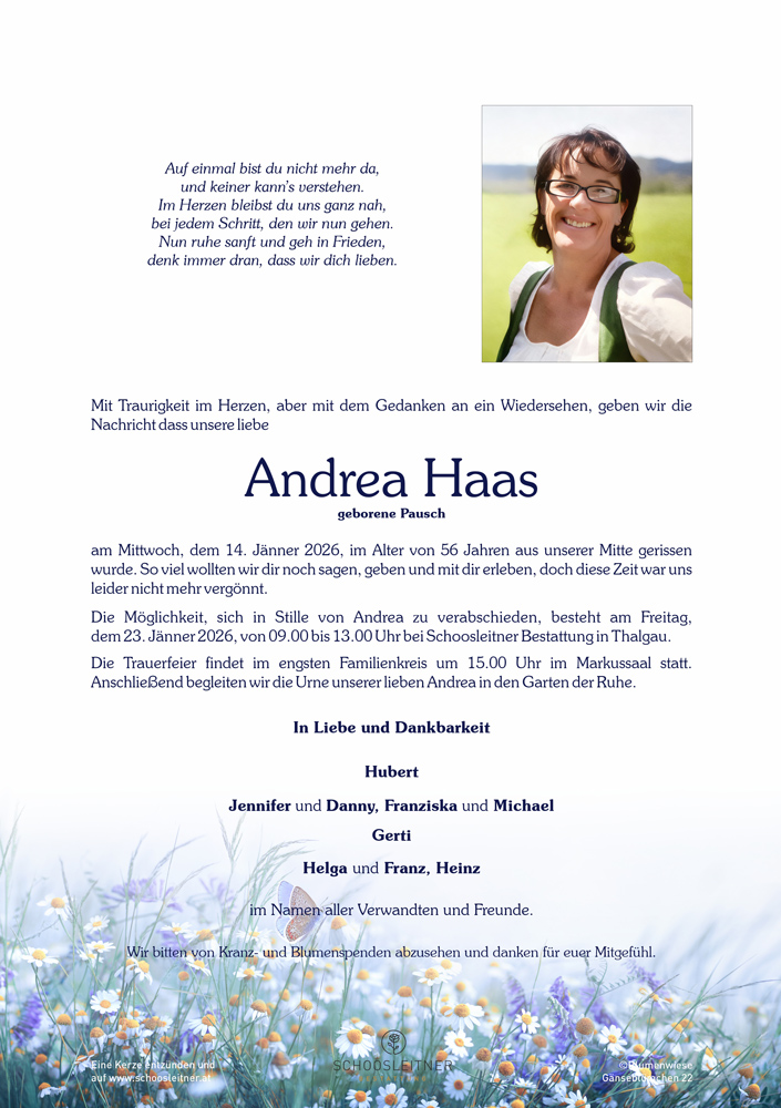 Neuer Eintrag in das Kondolenzbuch von Frau Andrea Haas