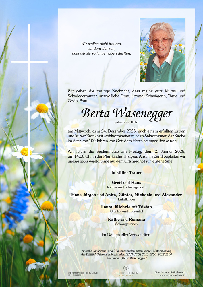 Neuer Eintrag in das Kondolenzbuch von Frau Berta Wasenegger
