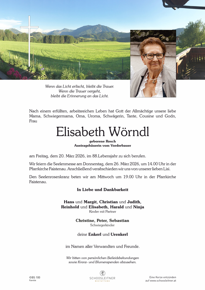 Neuer Eintrag in das Kondolenzbuch von Frau Elisabeth Wörndl