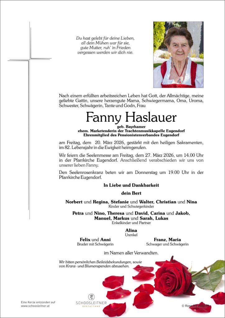 Neuer Eintrag in das Kondolenzbuch von Frau Fanny Haslauer