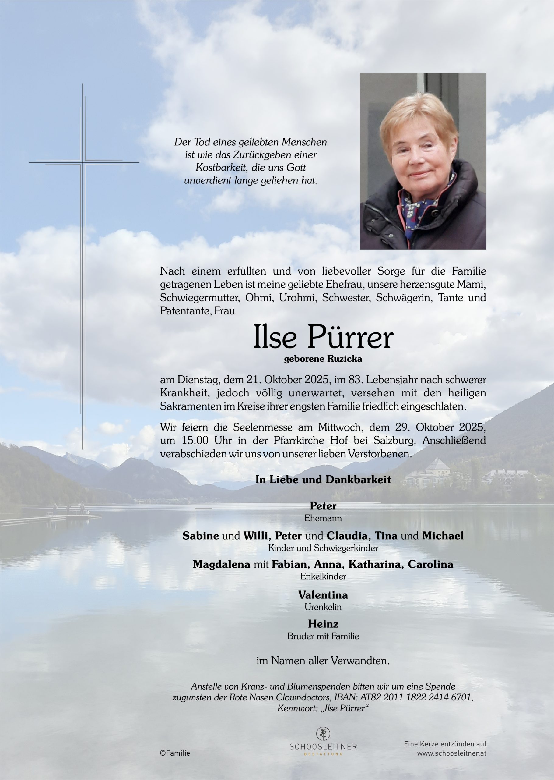 Neuer Eintrag in das Kondolenzbuch von Frau Ilse Pürrer