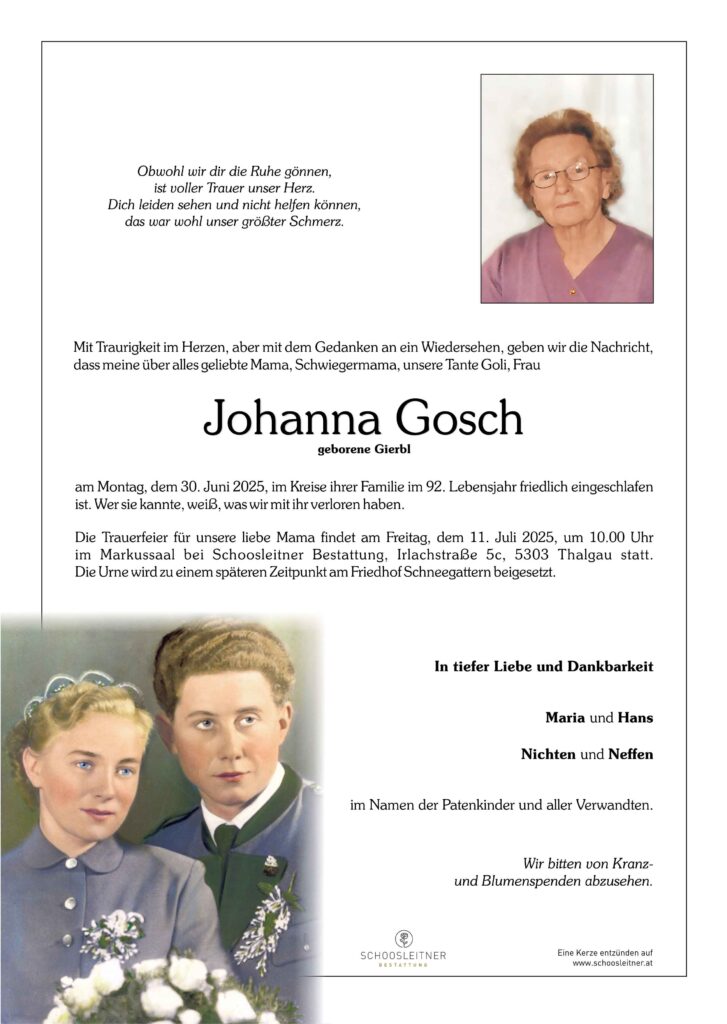Neuer Eintrag in das Kondolenzbuch von Frau Johanna Gosch