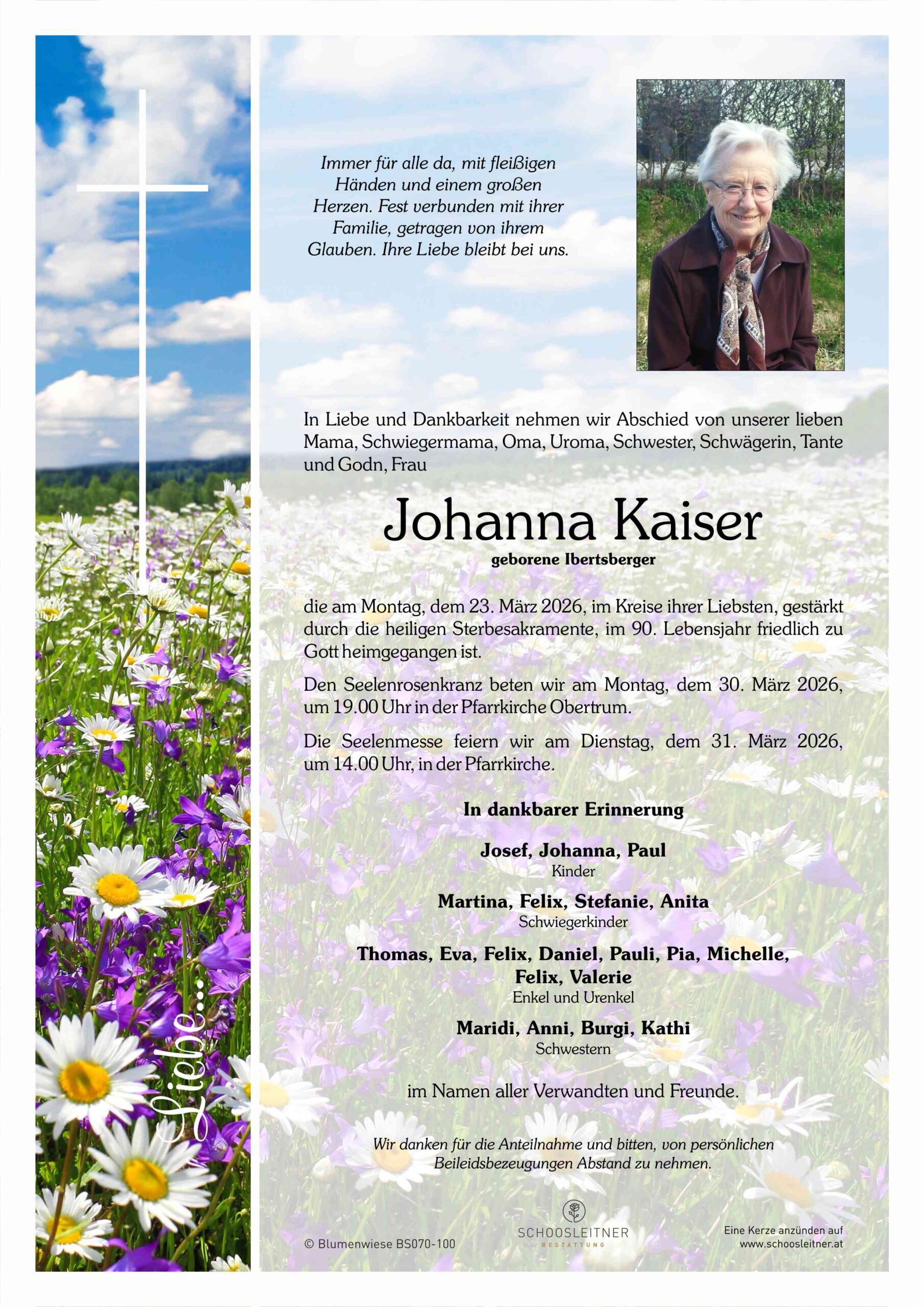 Neuer Eintrag in das Kondolenzbuch von Frau Johanna Kaiser