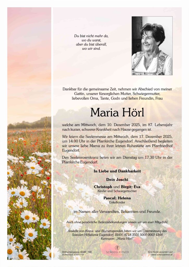 Neuer Eintrag in das Kondolenzbuch von Frau Maria Hörl
