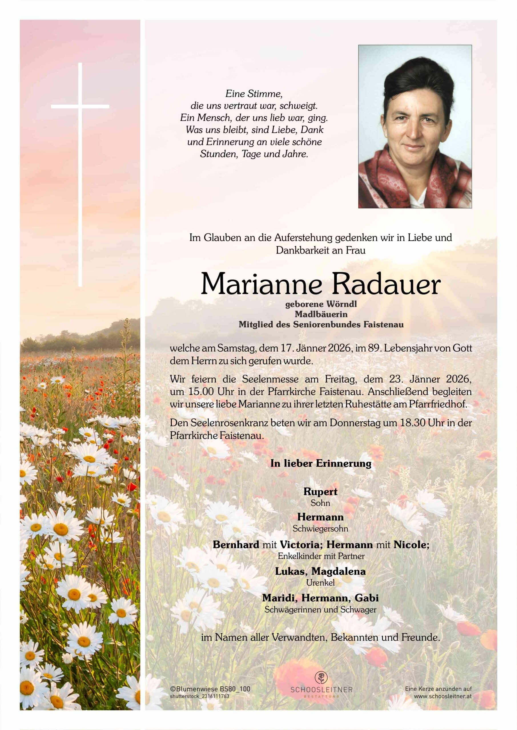 Neuer Eintrag in das Kondolenzbuch von Frau Marianne Radauer