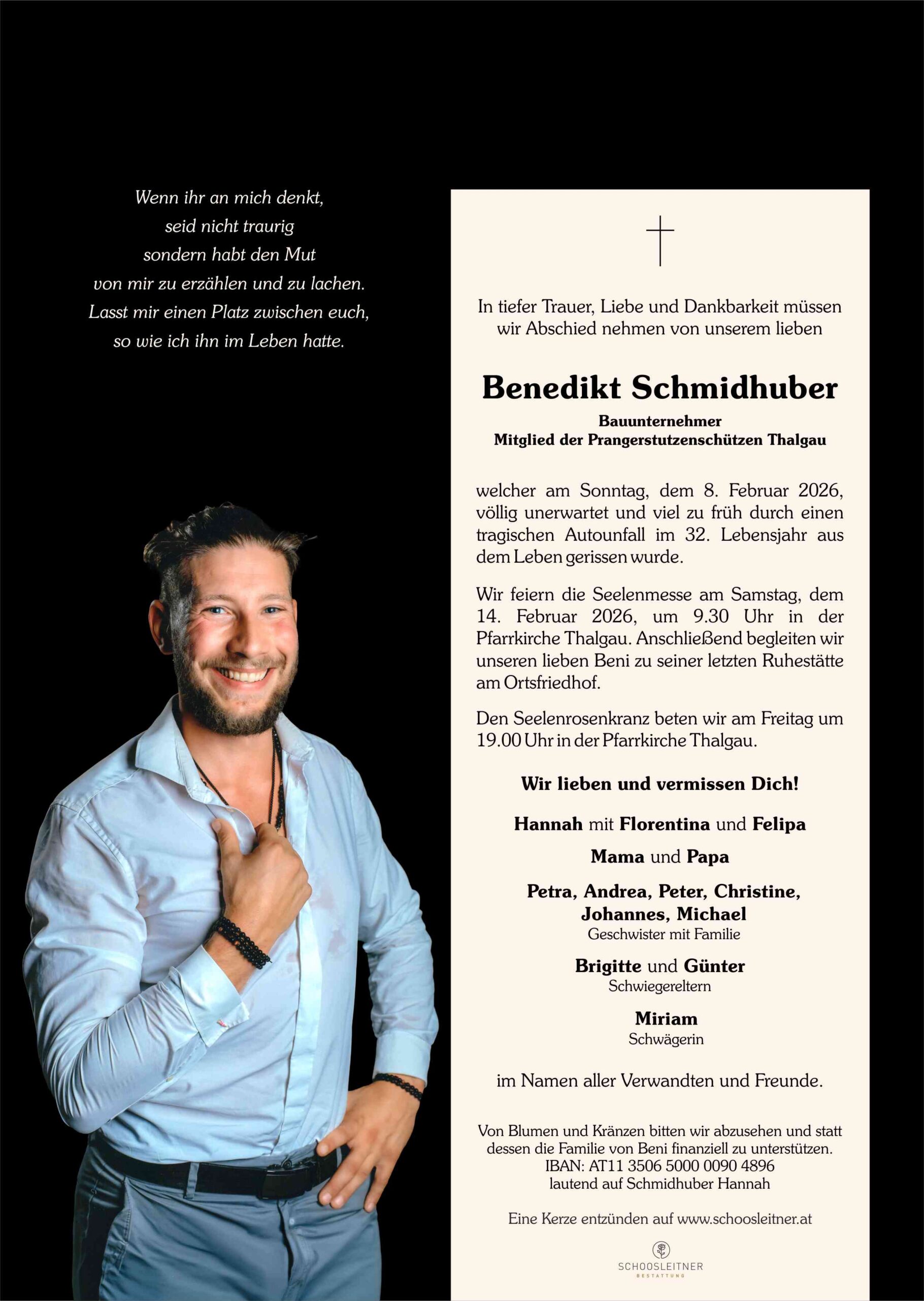 Neuer Eintrag in das Kondolenzbuch von Herr Benedikt Schmidhuber