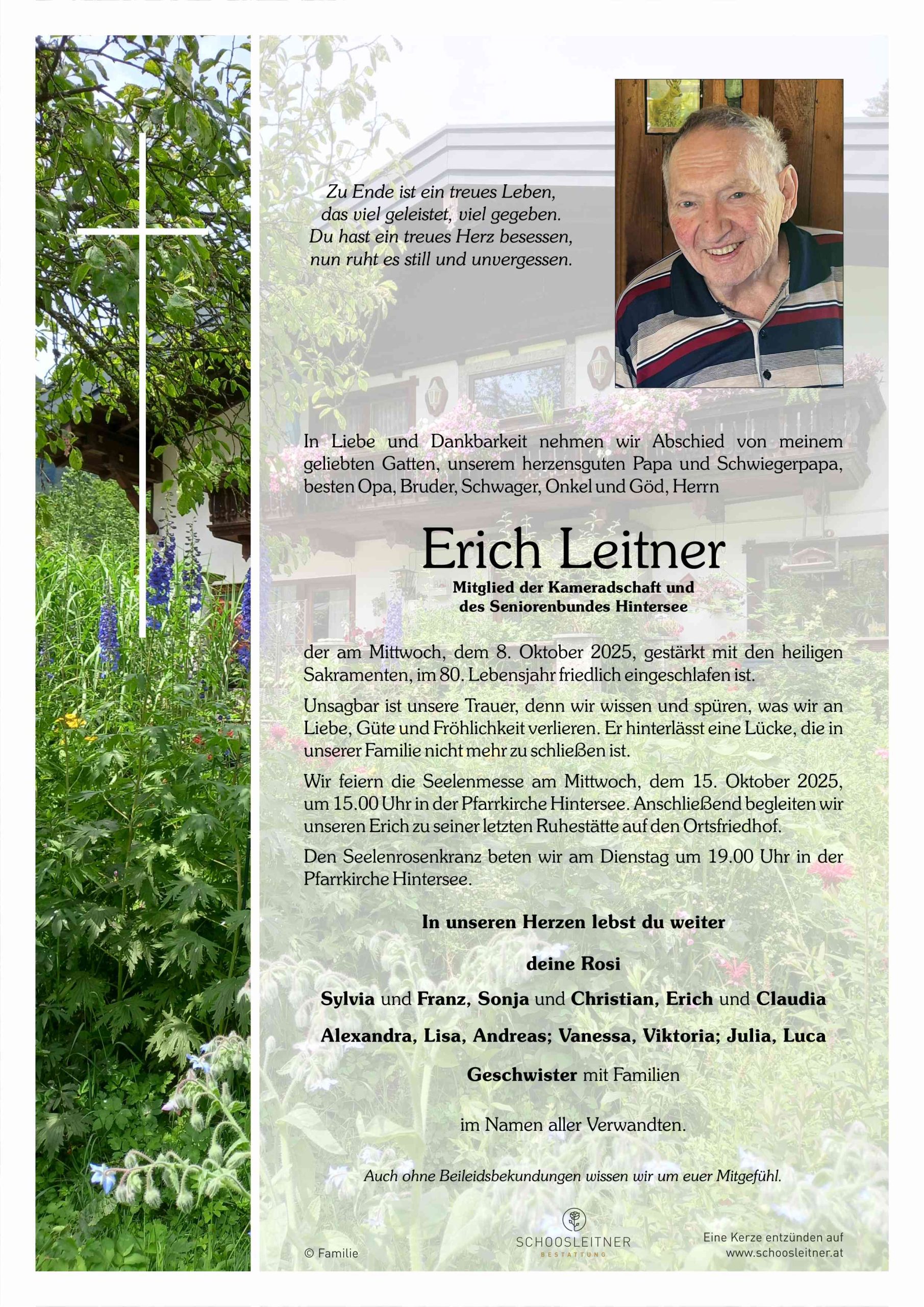 Neuer Eintrag in das Kondolenzbuch von Herr Erich Leitner