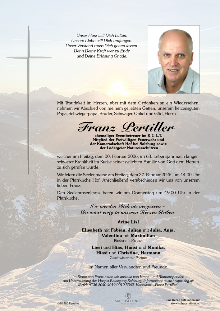 Neuer Eintrag in das Kondolenzbuch von Herr Franz Pertiller