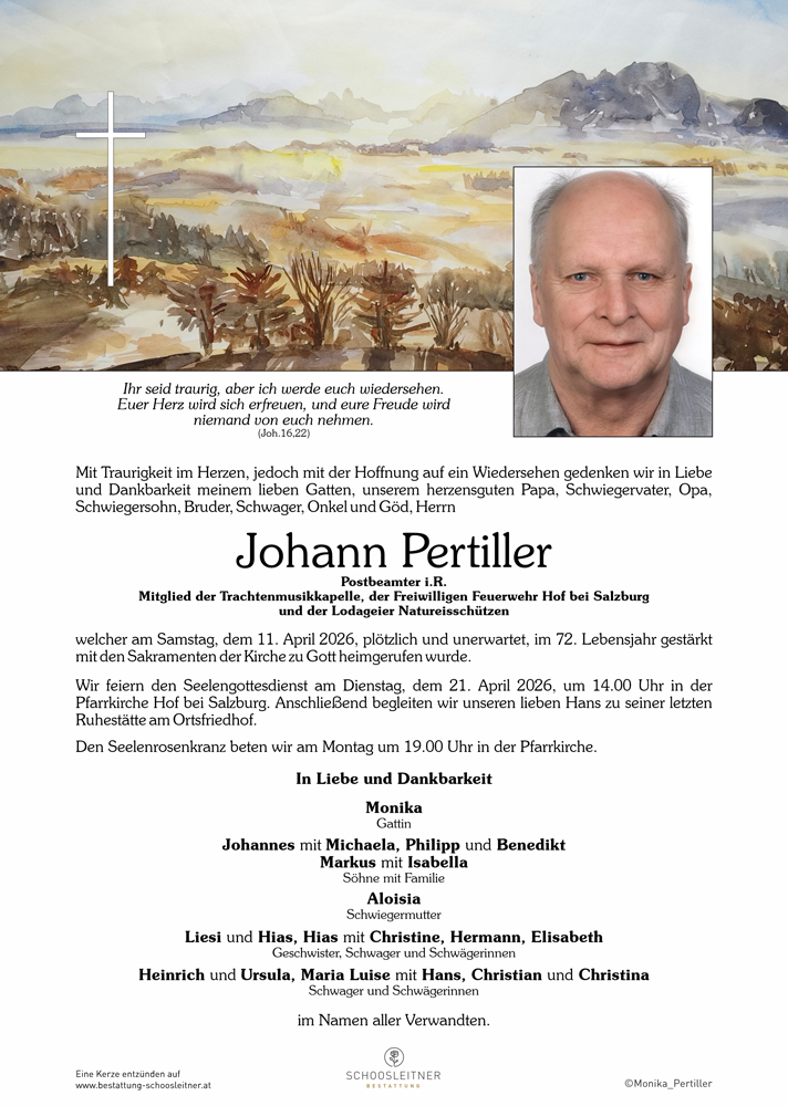 Neuer Eintrag in das Kondolenzbuch von Herr Johann Pertiller