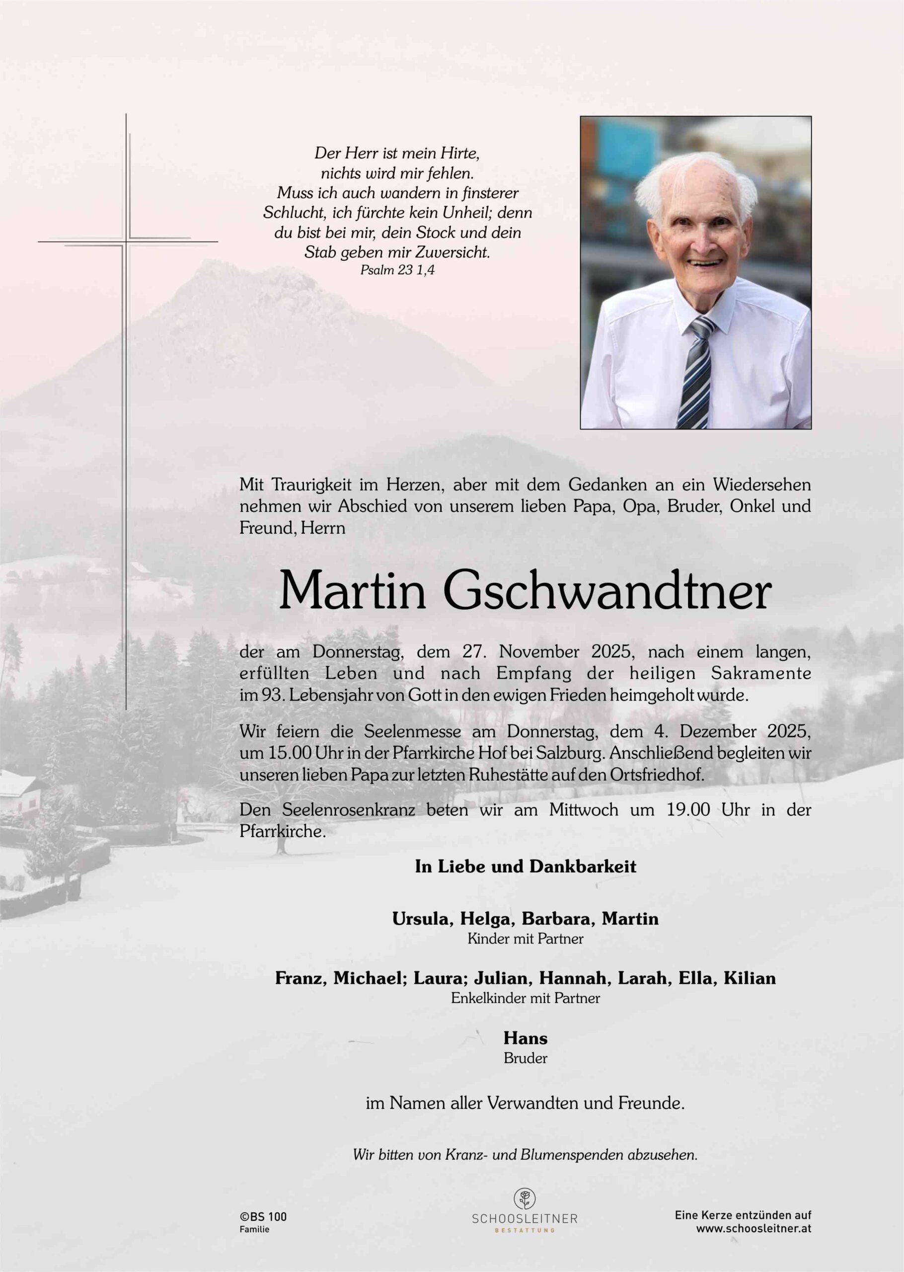 Neuer Eintrag in das Kondolenzbuch von Herr Martin Gschwandtner
