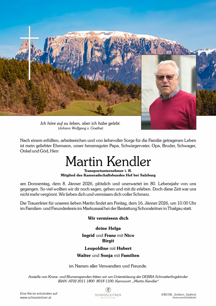 Neuer Eintrag in das Kondolenzbuch von Herr Martin Kendler