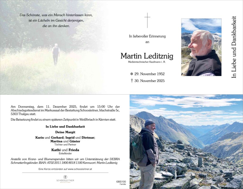 Neuer Eintrag in das Kondolenzbuch von Herr Martin Leditznig