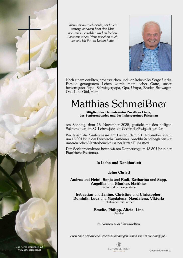 Neuer Eintrag in das Kondolenzbuch von Herr Matthias Schmeißner