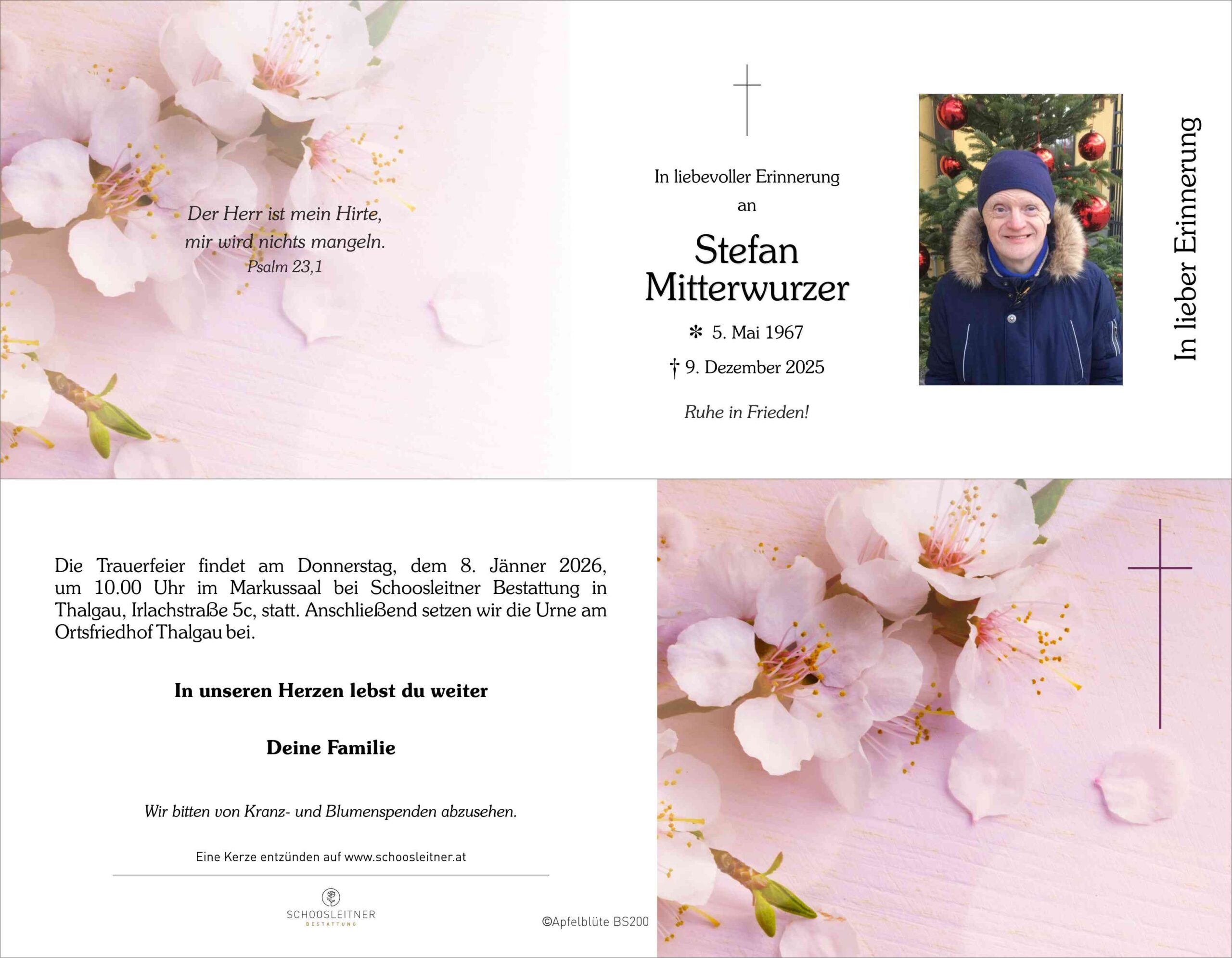 Neuer Eintrag in das Kondolenzbuch von Herr Stefan Mitterwurzer
